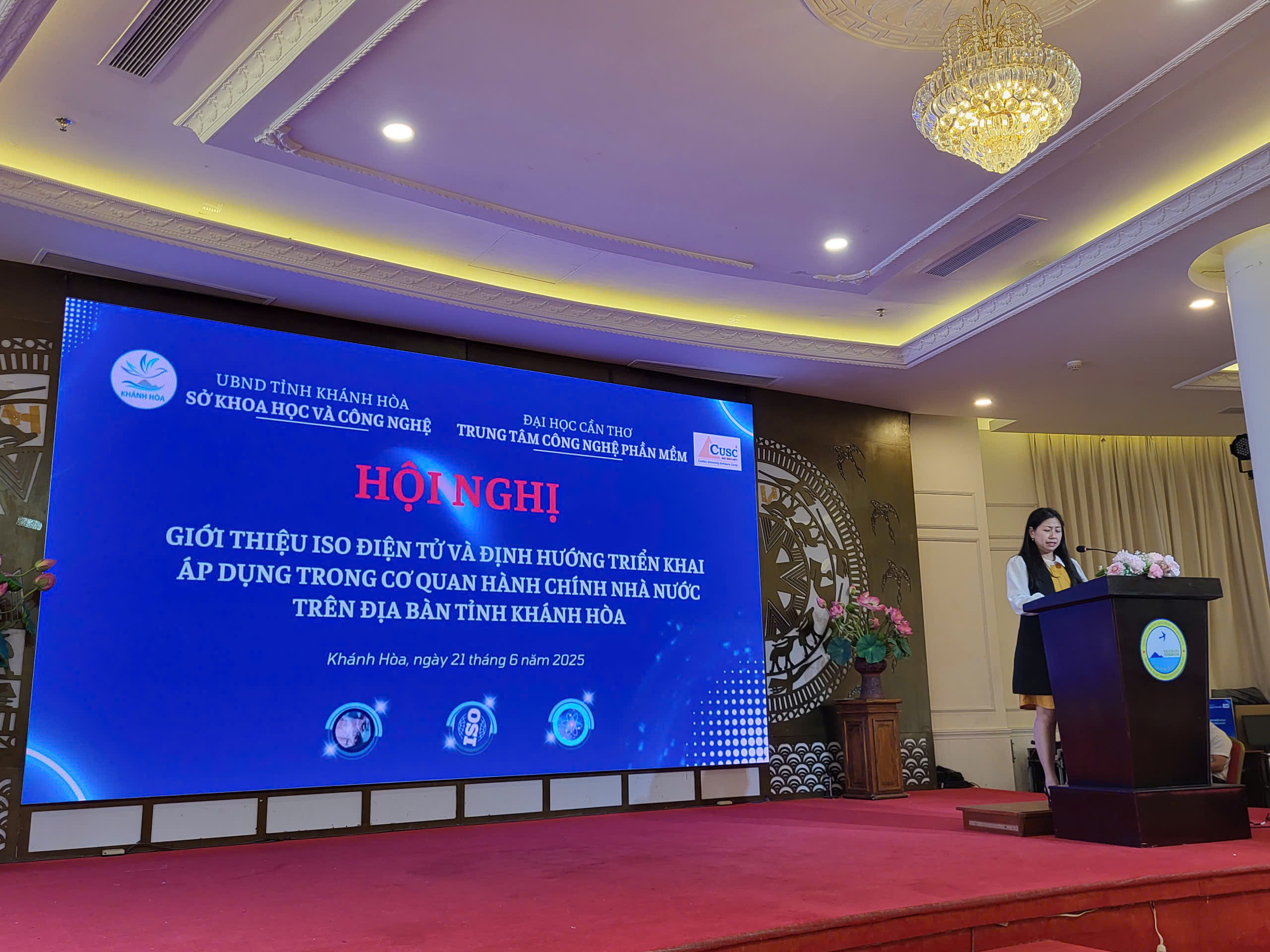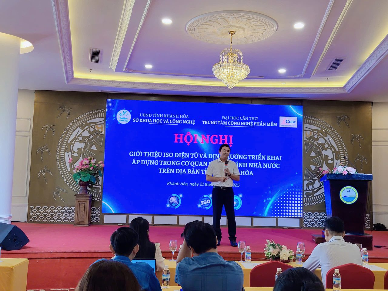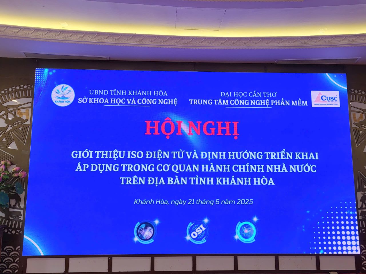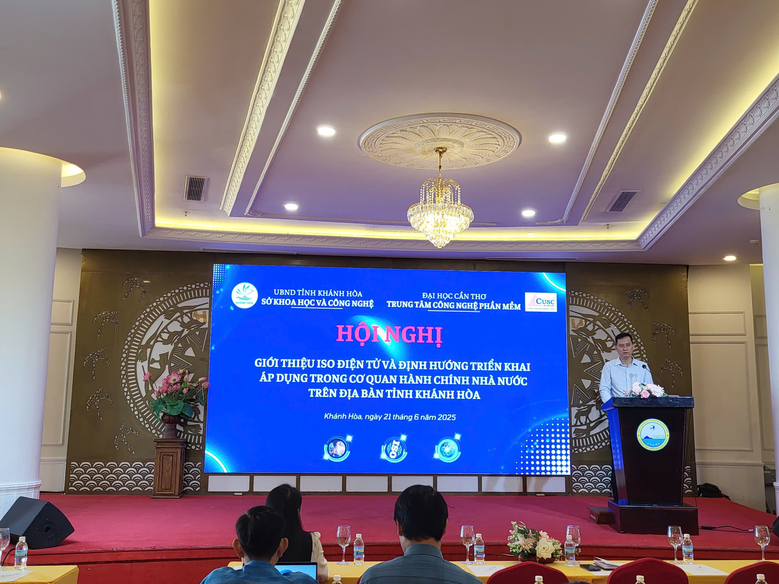 Sáng ngày 21/6/2025 tại tỉnh Khánh Hòa, Trung tâm Công nghệ Phần mềm – Trường Đại học Cần Thơ (CUSC) đã phối hợp cùng Sở Khoa học và Công nghệ tỉnh Khánh Hòa tổ chức "Hội nghị giới thiệu ISO điện tử theo tiêu chuẩn TCVN ISO 9001:2015 và Định hướng triển khai áp dụng trong cơ quan hành chính nhà nước trên địa bàn tỉnh Khánh Hòa".