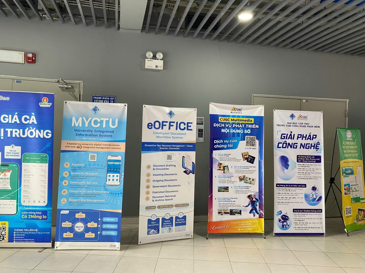 Về hoạt động phần mềm, Trung tâm trưng bày các ấn phẩm giới thiệu những sản phẩm công nghệ nổi bật do CUSC nghiên cứu, phát triển và triển khai trong thực tiễn, tiêu biểu như Hệ thống tích hợp thông tin quản lý đào tạo (UIIS), Hệ thống quản lý sáng kiến (IES), ISO điện tử, cùng các giải pháp IoT và chuyển đổi số trong lĩnh vực nông nghiệp và thủy sản, góp phần nâng cao hiệu quả quản lý, vận hành và phát triển bền vững trong môi trường số.