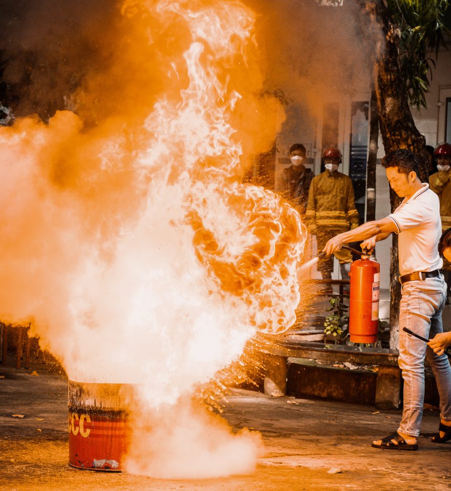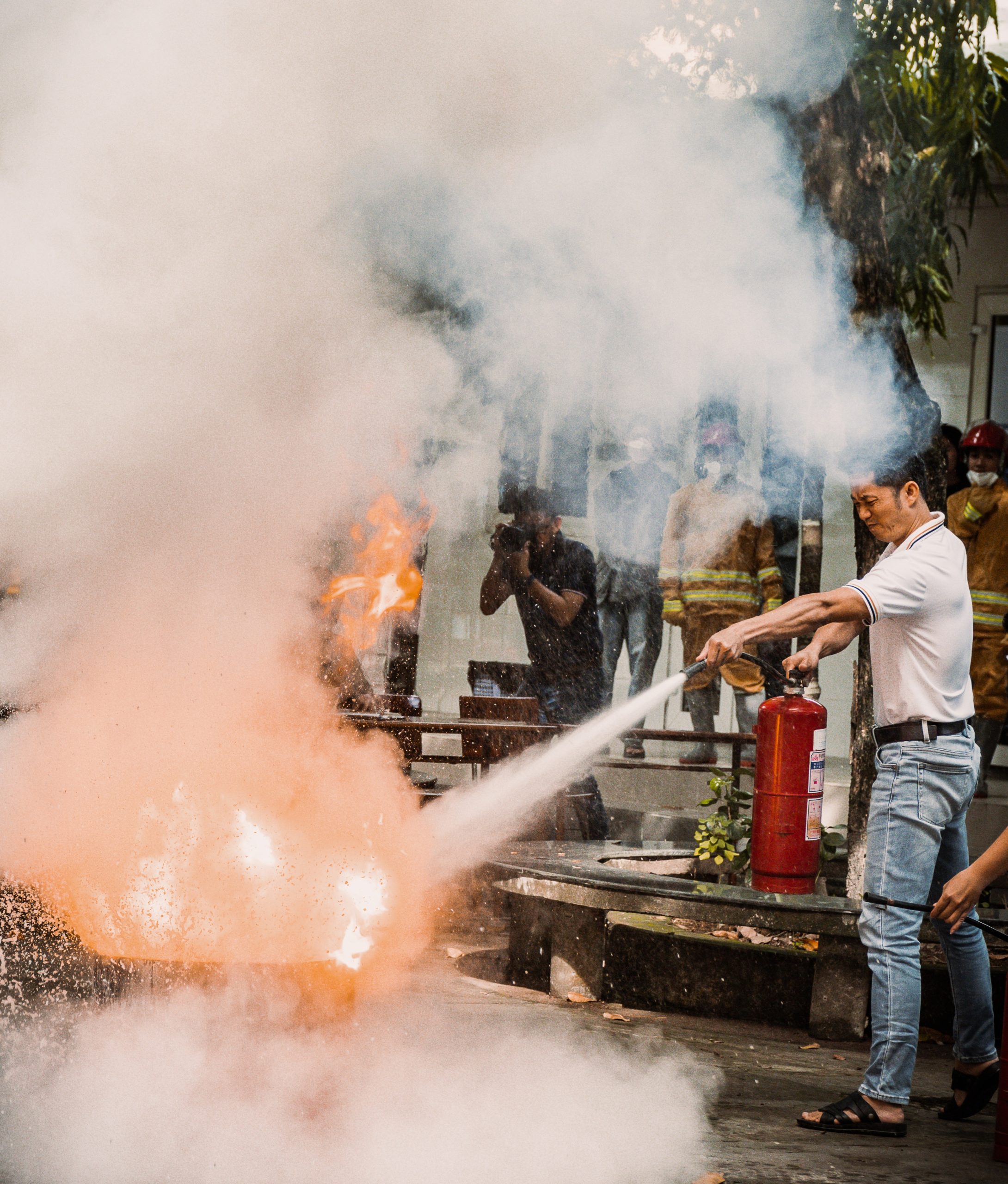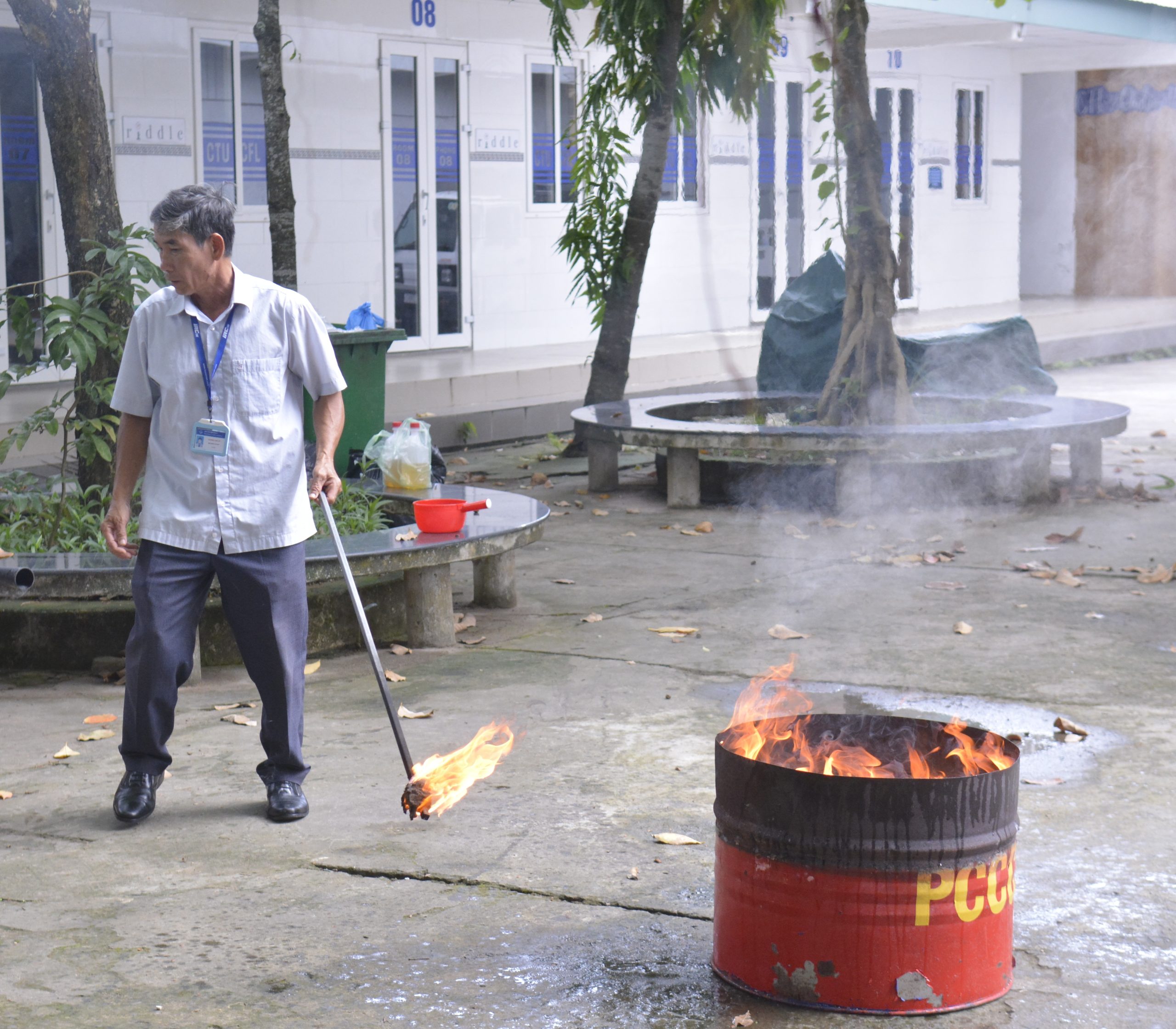 Khi nghe báo động cháy, đội PCCC tại Khu III lập tức tham gia chữa cháy, dùng bình chữa cháy đã được trang bị để dập tắt đám cháy.