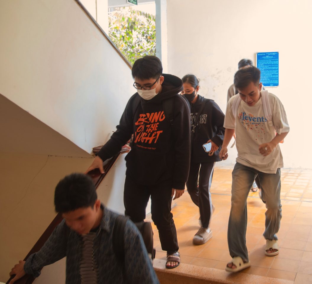 Cũng trong thời gian đó, toàn thể VC-NLĐ đang làm việc và tất cả các sinh viên, học viên đang học tập tại tòa A2 lập tức tiến hành sơ tán ra khỏi tòa nhà sau khi nghe báo cháy.