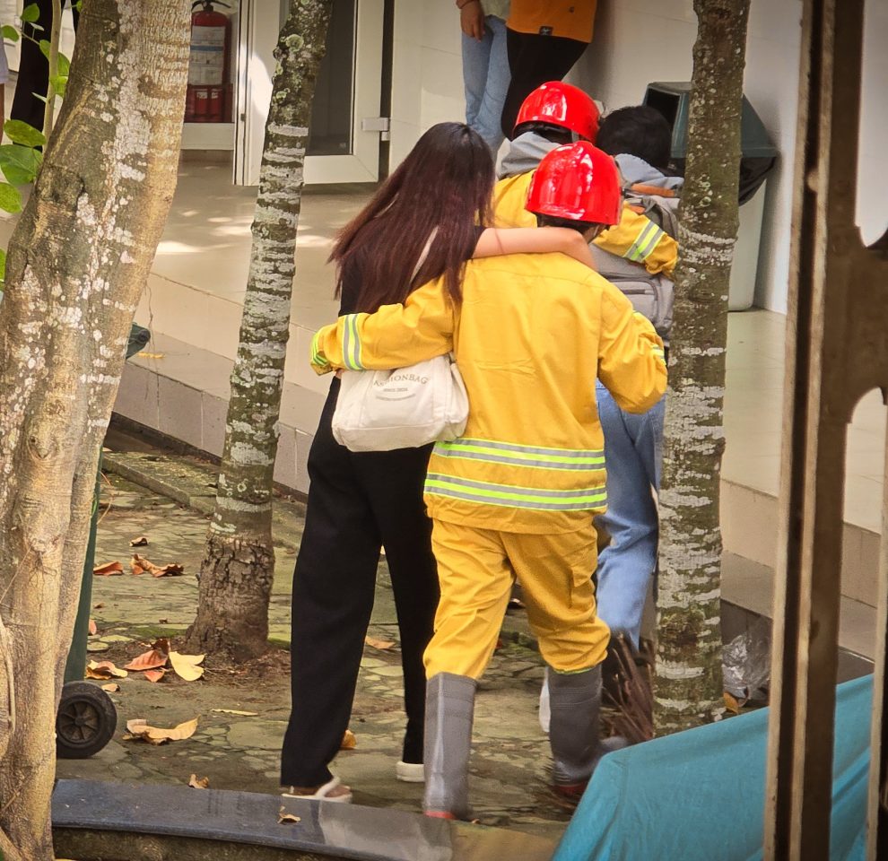 Các thành viên trong đội PCCC Khu III có nhiệm vụ cứu nạn cứu hộ tiến hành kiểm tra các phòng trong tòa nhà A2. Nhóm đã kịp dìu những người cuối cùng thoát ra khỏi nơi cháy.