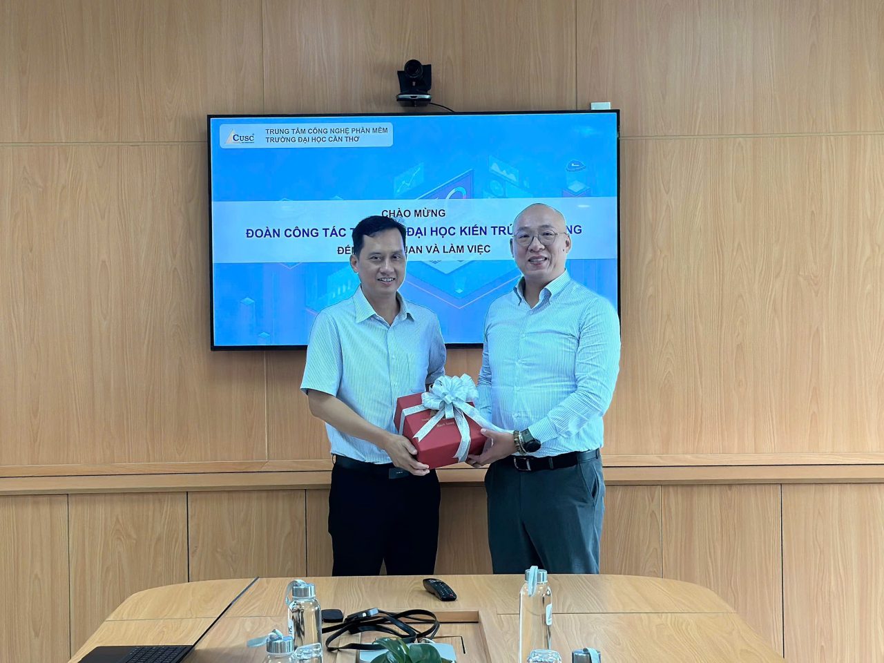 Lãnh đạo CUSC trao quà lưu niệm đến lãnh đạo Trường Đại học Kiến trúc Đà Nẵng
